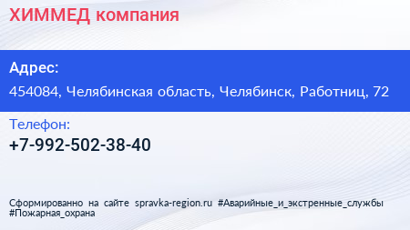 ХИММЕД, компания по адресу 454084, Челябинская область, Челябинск, Работниц, 72 в дальнейшем Организация, размещена в следующих категориях: