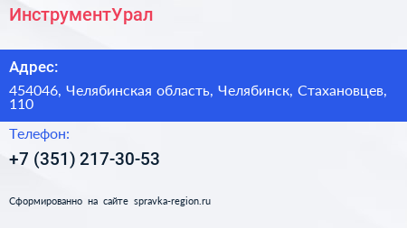 ИнструментУрал по адресу 454046, Челябинская область, Челябинск, Стахановцев, 110 в дальнейшем Организация, размещена в следующих категориях: