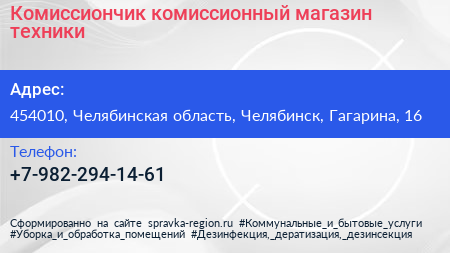 Комиссиончик, комиссионный магазин техники по адресу 454010, Челябинская область, Челябинск, Гагарина, 16 в дальнейшем Организация, размещена в следующих категориях: