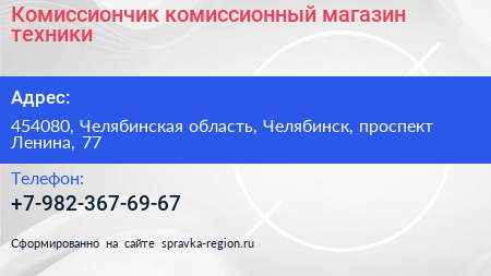 Комиссиончик, комиссионный магазин техники по адресу 454080, Челябинская область, Челябинск, проспект Ленина, 77 в дальнейшем Организация, размещена в следующих категориях: