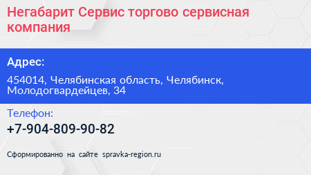 Негабарит-Сервис, торгово-сервисная компания по адресу 454014, Челябинская область, Челябинск, Молодогвардейцев, 34 в дальнейшем Организация, размещена в следующих категориях: