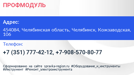 ПРОФМОДУЛЬ по адресу 454084, Челябинская область, Челябинск, Кожзаводская, 106 в дальнейшем Организация, размещена в следующих категориях: