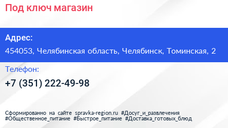 Под ключ, магазин по адресу 454053, Челябинская область, Челябинск, Томинская, 2 в дальнейшем Организация, размещена в следующих категориях: