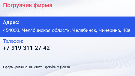 Погрузчик, фирма по адресу 454003, Челябинская область, Челябинск, Чичерина, 40в в дальнейшем Организация, размещена в следующих категориях: