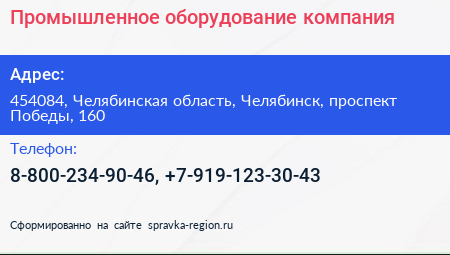 Промышленное оборудование, компания по адресу 454084, Челябинская область, Челябинск, проспект Победы, 160 в дальнейшем Организация, размещена в следующих категориях: