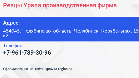 Резцы Урала, производственная фирма по адресу 454045, Челябинская область, Челябинск, Корабельная, 15 к2 в дальнейшем Организация, размещена в следующих категориях: