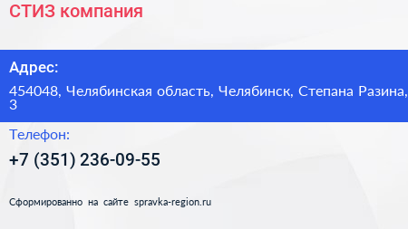 СТИЗ, компания по адресу 454048, Челябинская область, Челябинск, Степана Разина, 3 в дальнейшем Организация, размещена в следующих категориях: