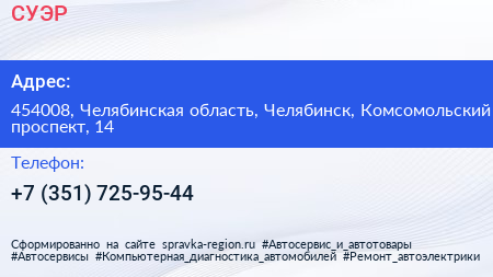 СУЭР по адресу 454008, Челябинская область, Челябинск, Комсомольский проспект, 14 в дальнейшем Организация, размещена в следующих категориях: