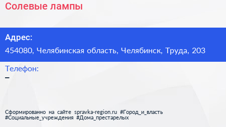 Солевые лампы по адресу 454080, Челябинская область, Челябинск, Труда, 203 в дальнейшем Организация, размещена в следующих категориях: