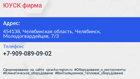 ЮУСК, фирма по адресу 454138, Челябинская область, Челябинск, Молодогвардейцев, 7/3 в дальнейшем Организация, размещена в следующих категориях: