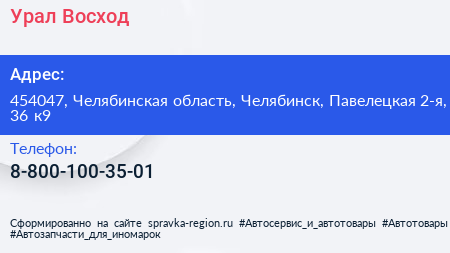 Урал Восход по адресу 454047, Челябинская область, Челябинск, Павелецкая 2-я, 36 к9 в дальнейшем Организация, размещена в следующих категориях: