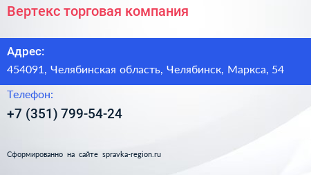 Вертекс, торговая компания по адресу 454091, Челябинская область, Челябинск, Маркса, 54 в дальнейшем Организация, размещена в следующих категориях: