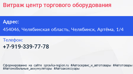 Витраж, центр торгового оборудования по адресу 454046, Челябинская область, Челябинск, Артёма, 1/4 в дальнейшем Организация, размещена в следующих категориях: