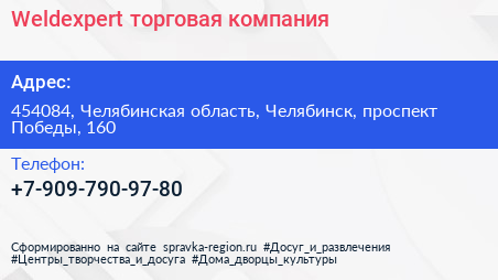 Weldexpert, торговая компания по адресу 454084, Челябинская область, Челябинск, проспект Победы, 160 в дальнейшем Организация, размещена в следующих категориях: