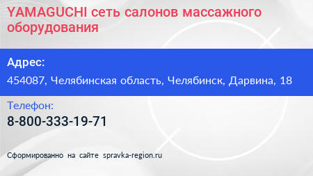 YAMAGUCHI, сеть салонов массажного оборудования по адресу 454087, Челябинская область, Челябинск, Дарвина, 18 в дальнейшем Организация, размещена в следующих категориях: