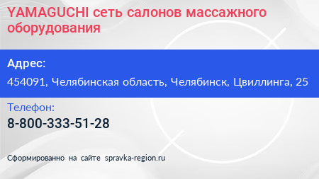 YAMAGUCHI, сеть салонов массажного оборудования по адресу 454091, Челябинская область, Челябинск, Цвиллинга, 25 в дальнейшем Организация, размещена в следующих категориях: