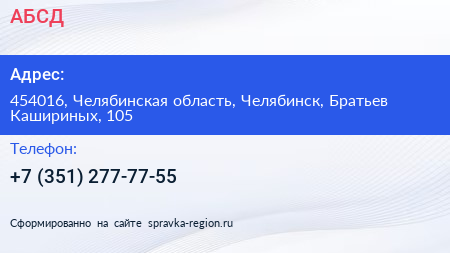 АБСД по адресу 454016, Челябинская область, Челябинск, Братьев Кашириных, 105 в дальнейшем Организация, размещена в следующих категориях: