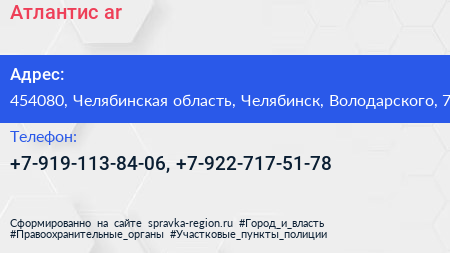 Атлантис ar по адресу 454080, Челябинская область, Челябинск, Володарского, 7 в дальнейшем Организация, размещена в следующих категориях: