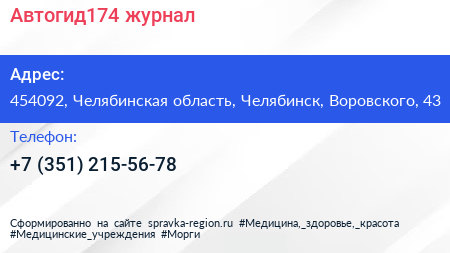 Автогид174, журнал по адресу 454092, Челябинская область, Челябинск, Воровского, 43 в дальнейшем Организация, размещена в следующих категориях: