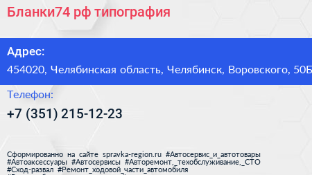 Бланки74.рф, типография по адресу 454020, Челябинская область, Челябинск, Воровского, 50Б в дальнейшем Организация, размещена в следующих категориях: