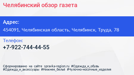 Челябинский обзор, газета по адресу 454091, Челябинская область, Челябинск, Труда, 78 в дальнейшем Организация, размещена в следующих категориях: