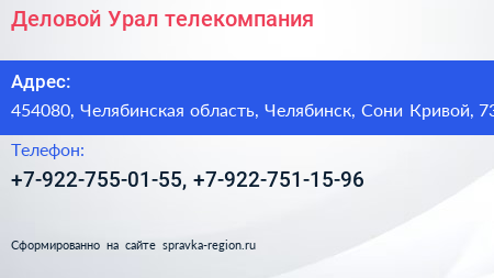 Деловой Урал, телекомпания по адресу 454080, Челябинская область, Челябинск, Сони Кривой, 73 в дальнейшем Организация, размещена в следующих категориях: