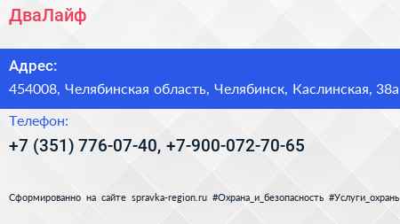 ДваЛайф по адресу 454008, Челябинская область, Челябинск, Каслинская, 38а в дальнейшем Организация, размещена в следующих категориях: