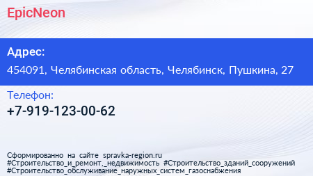 EpicNeon по адресу 454091, Челябинская область, Челябинск, Пушкина, 27 в дальнейшем Организация, размещена в следующих категориях: