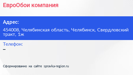 ЕвроОбои, компания по адресу 454008, Челябинская область, Челябинск, Свердловский тракт, 1ж в дальнейшем Организация, размещена в следующих категориях: