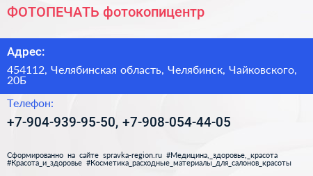 ФОТОПЕЧАТЬ, фотокопицентр по адресу 454112, Челябинская область, Челябинск, Чайковского, 20Б в дальнейшем Организация, размещена в следующих категориях: