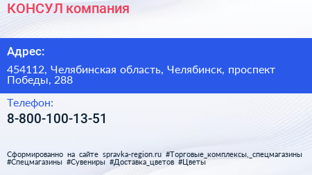 КОНСУЛ, компания по адресу 454112, Челябинская область, Челябинск, проспект Победы, 288 в дальнейшем Организация, размещена в следующих категориях: