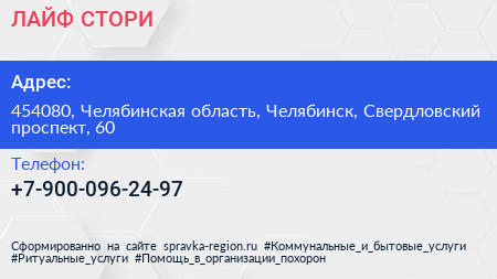 ЛАЙФ СТОРИ по адресу 454080, Челябинская область, Челябинск, Свердловский проспект, 60 в дальнейшем Организация, размещена в следующих категориях: