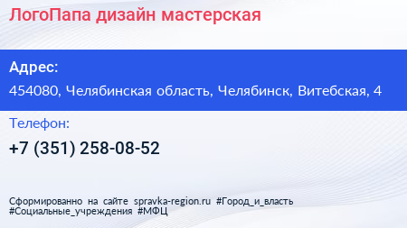 ЛогоПапа, дизайн-мастерская по адресу 454080, Челябинская область, Челябинск, Витебская, 4 в дальнейшем Организация, размещена в следующих категориях: