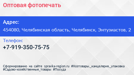 Оптовая фотопечать по адресу 454080, Челябинская область, Челябинск, Энтузиастов, 2 в дальнейшем Организация, размещена в следующих категориях: