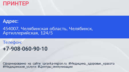 ПРИНТЕР+ по адресу 454007, Челябинская область, Челябинск, Артиллерийская, 124/5 в дальнейшем Организация, размещена в следующих категориях: