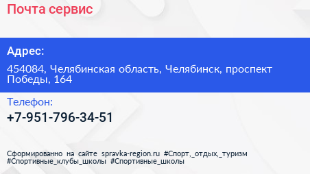 Почта-сервис по адресу 454084, Челябинская область, Челябинск, проспект Победы, 164 в дальнейшем Организация, размещена в следующих категориях: