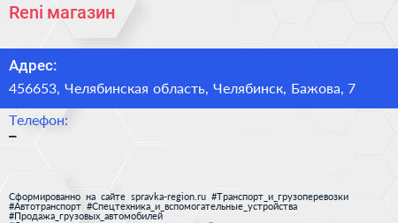 Reni, магазин по адресу 456653, Челябинская область, Челябинск, Бажова, 7 в дальнейшем Организация, размещена в следующих категориях: