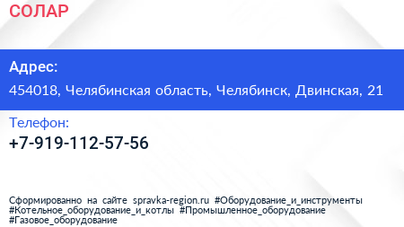 СОЛАР по адресу 454018, Челябинская область, Челябинск, Двинская, 21 в дальнейшем Организация, размещена в следующих категориях: