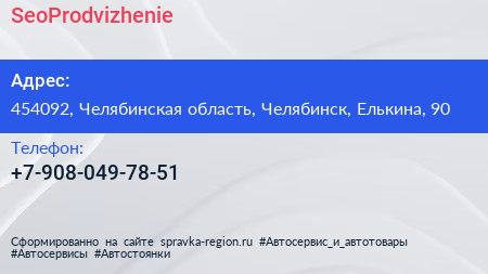 SeoProdvizhenie по адресу 454092, Челябинская область, Челябинск, Елькина, 90 в дальнейшем Организация, размещена в следующих категориях: