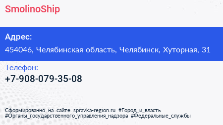 SmolinoShip по адресу 454046, Челябинская область, Челябинск, Хуторная, 31 в дальнейшем Организация, размещена в следующих категориях: