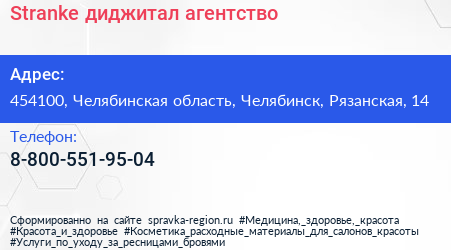 Stranke, диджитал-агентство по адресу 454100, Челябинская область, Челябинск, Рязанская, 14 в дальнейшем Организация, размещена в следующих категориях: