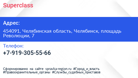 Superclass по адресу 454091, Челябинская область, Челябинск, площадь Революции, 7 в дальнейшем Организация, размещена в следующих категориях: