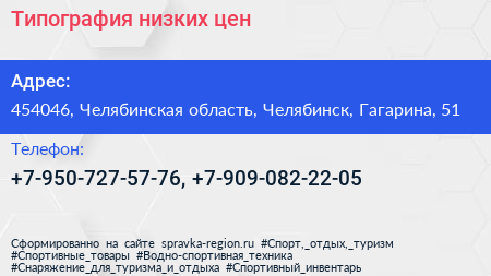 Типография низких цен по адресу 454046, Челябинская область, Челябинск, Гагарина, 51 в дальнейшем Организация, размещена в следующих категориях: