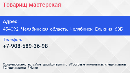 Товарищ, мастерская по адресу 454092, Челябинская область, Челябинск, Елькина, 63Б в дальнейшем Организация, размещена в следующих категориях: