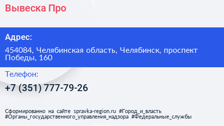 Вывеска.Про по адресу 454084, Челябинская область, Челябинск, проспект Победы, 160 в дальнейшем Организация, размещена в следующих категориях: