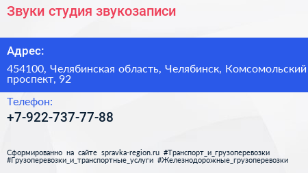 Звуки, студия звукозаписи по адресу 454100, Челябинская область, Челябинск, Комсомольский проспект, 92 в дальнейшем Организация, размещена в следующих категориях: