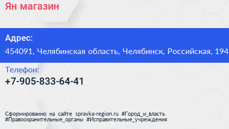 Ян, магазин по адресу 454091, Челябинская область, Челябинск, Российская, 194 в дальнейшем Организация, размещена в следующих категориях: