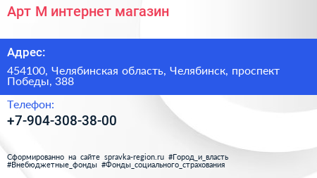 Арт-М, интернет-магазин по адресу 454100, Челябинская область, Челябинск, проспект Победы, 388 в дальнейшем Организация, размещена в следующих категориях: