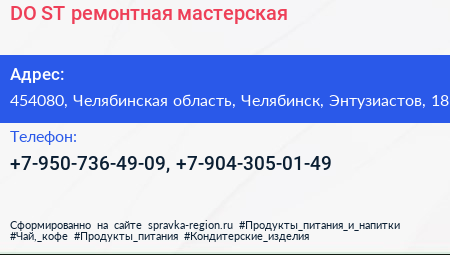DO`ST, ремонтная мастерская по адресу 454080, Челябинская область, Челябинск, Энтузиастов, 18 в дальнейшем Организация, размещена в следующих категориях: