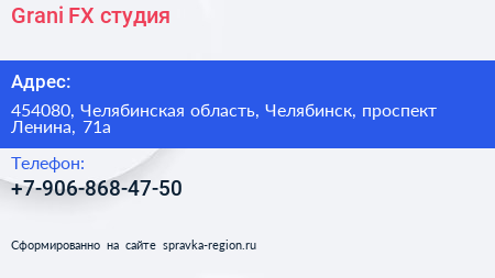 Grani-FX, студия по адресу 454080, Челябинская область, Челябинск, проспект Ленина, 71а в дальнейшем Организация, размещена в следующих категориях: